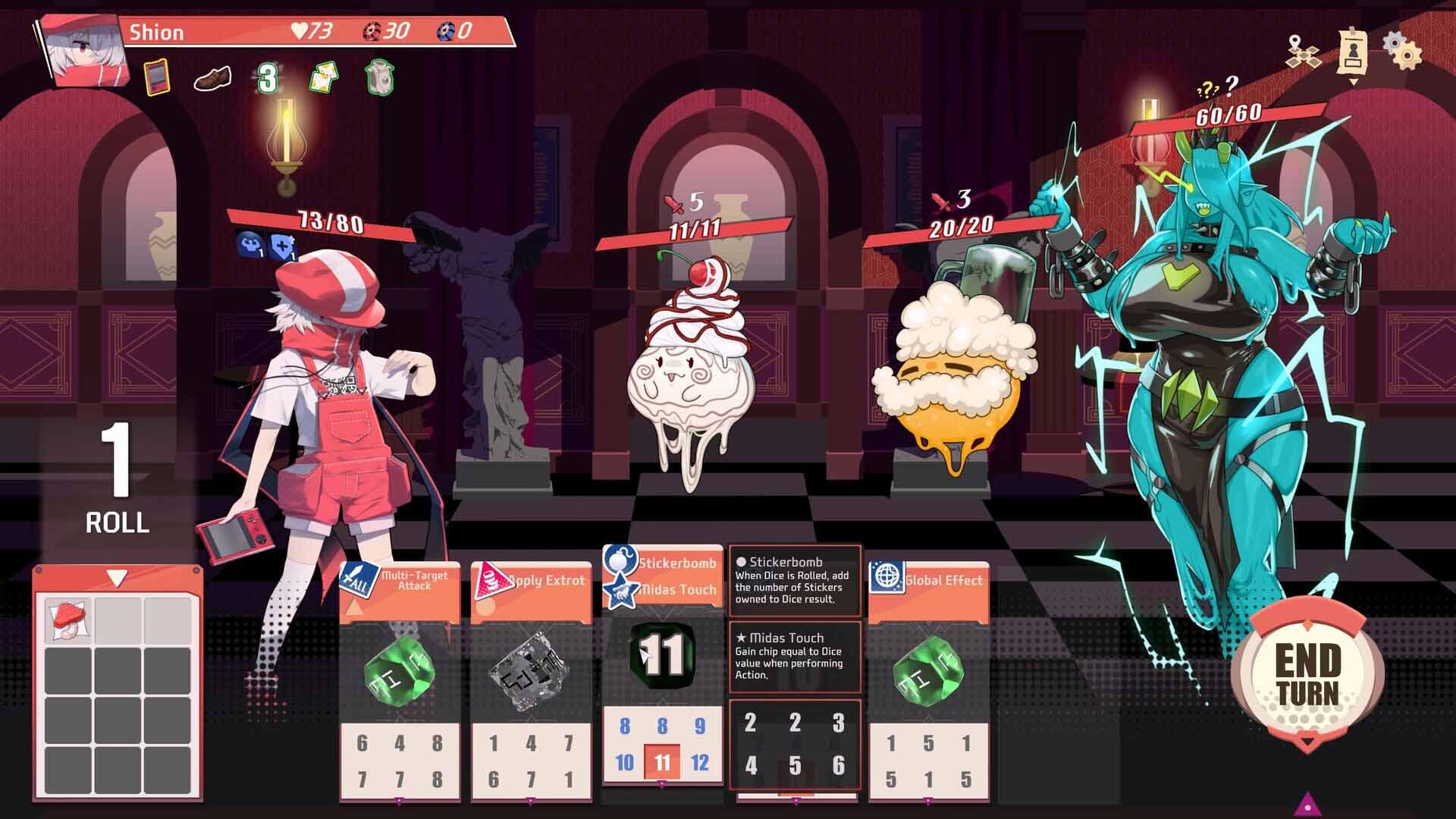 通过改造增加骰面的数值,贴上贴纸(竟然能贴2张!)赋予特殊效果,或者利用遗物来强化整个骰组。