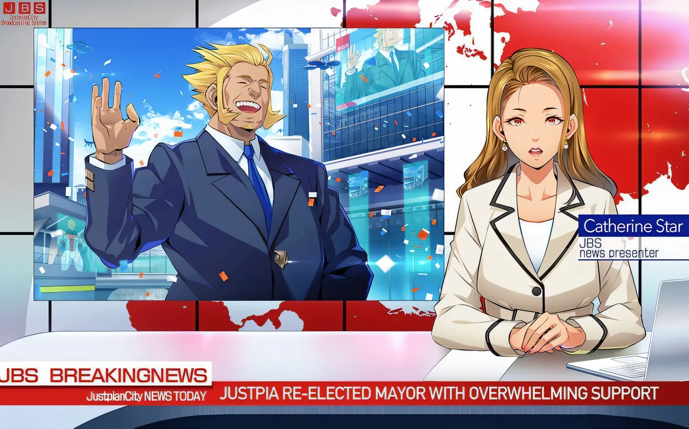 亦是英雄协会会长的贾斯特皮亚,为了消灭魔都中的犯罪和反派而指挥着英雄们,以世界和平为目标,今天也守护着市民的安全。