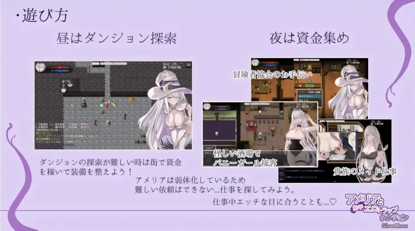 游戏准备了地牢和城镇两个舞台,在地牢中主要有触手和色情陷阱,