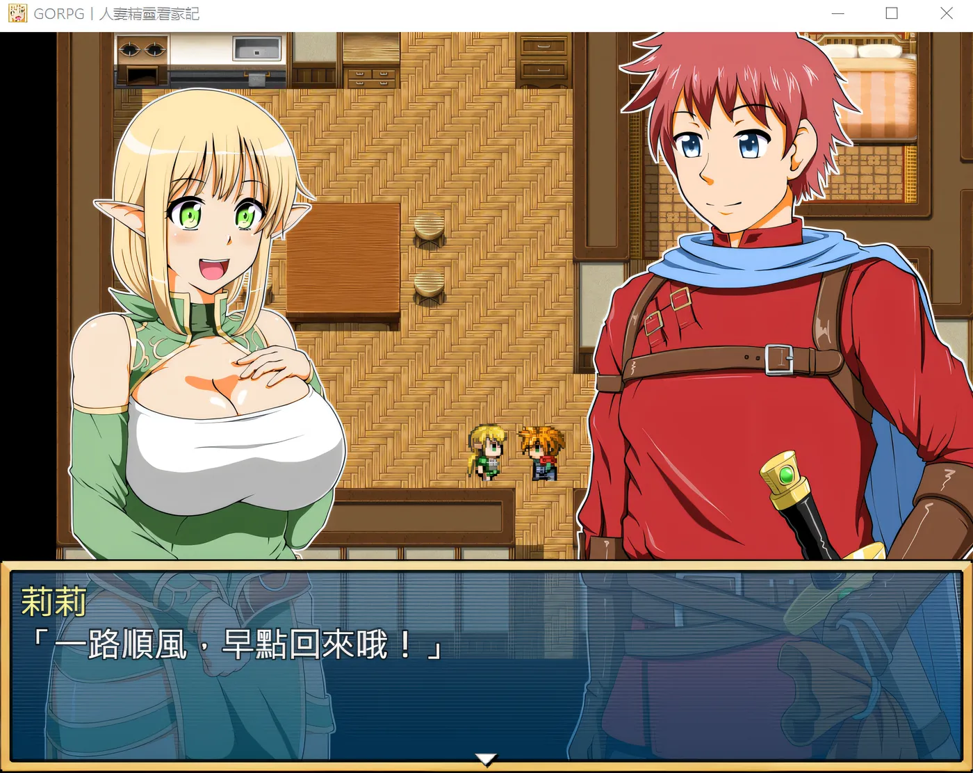 这是一款,讲述丈夫不在家期间,精灵新妻和镇里的大家,进行负距离的深入交流,一顶又一顶的做绿帽子的奇妙RPG游戏!