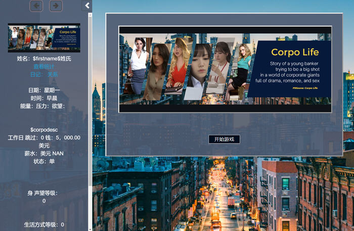 生命体(Corpo Life) 这是一款HTML游戏新作,你将在游戏里和各种美女NPC互动,当然你要有足够的Money。
