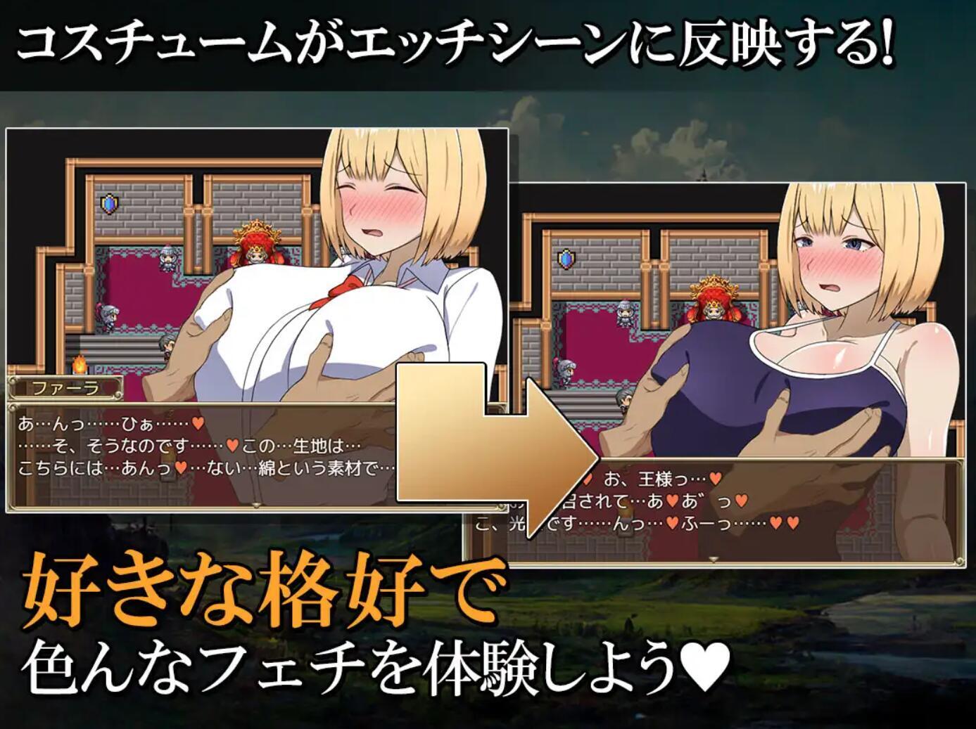 受国王器重的勇者后代法拉,准备开启了讨伐魔王之旅。然而她和同伴在旅途中无意打开了异世界的大门…被传送到了现在日本国的某个充满了精力旺盛男性的街道上。对只有剑和魔法知识的法拉来说,这里的H文化冲击实在太强了…她能够摆脱这些现代男性的麻烦,回到异世界,继续打败魔王吗?各种异世界和现代文化差异的对碰影响。多种不同换装制服影响不同的H事件。现代世界和幻想异世界两个游戏舞台。异世界有战斗和关卡,现代世界没有战斗只有探索事件。H值随经验增加变化,通关后自由模式可在两个世界自由穿梭。