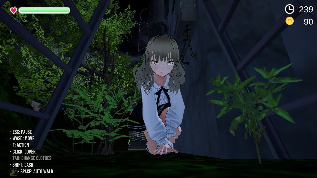 这是一款3D潜行动作游戏,玩家需要操作因意外而不得不在野外暴露身体的女孩子,目标是到达终点。